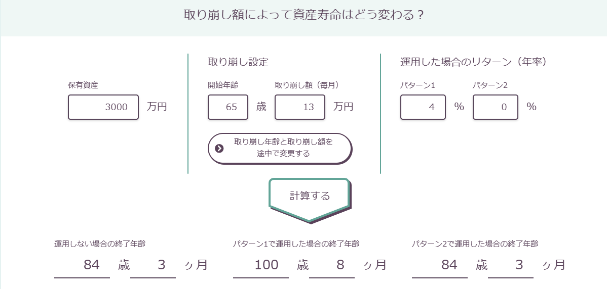 そうすれば、100歳まで資産を取り崩すことが可能になる。