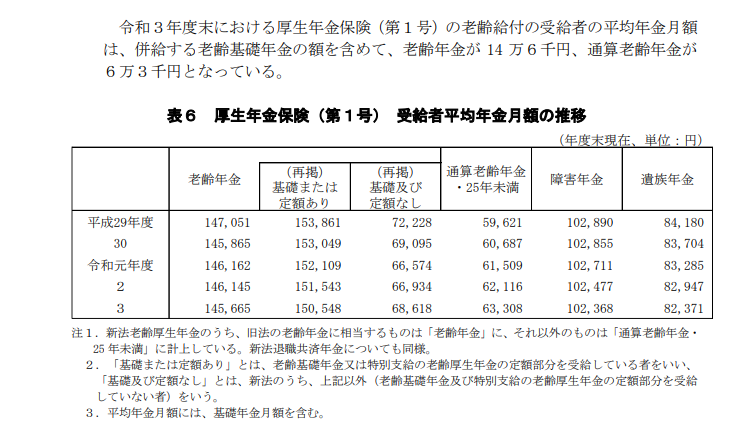 表のとおり、単身の場合だと厚生年金の平均受給額は約14.6万円になる。
